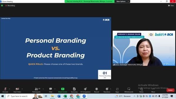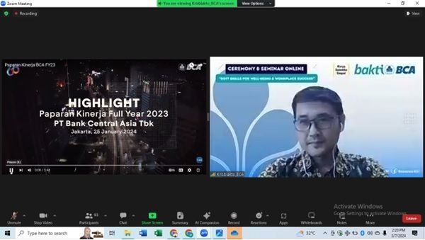 Thus, the “Ceremony & Seminar Soft Skills For Well-Being & Workplace Success” held by PT BCA Tbk on March 7 2024 via the Zoom platform succeeded in providing valuable insight and motivation for the participants. From presenting material on financial planning to communication strategies and personal branding, this event not only inspires, but also provides an in-depth view of the importance of developing soft skills in achieving success in the workplace and everyday life. This news event is clear evidence of PT BCA Tbk’s dedication in helping to form a young generation that is qualified and ready to compete in the era of globalization.