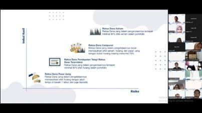 Financial Literacy material presented by Kautsar Rissalat Pratama ‘Getting to Know Mutual Funds: Good Financial Management’. In this presentation, he started his presentation by introducing to the audience about Danareksa’s company profile. Then he gave investment tips to the students to start investing. The first tip is to set aside the money you have. Second, eliminate the types of expenses by determining priorities. And the third, invest at least 30% of the income earned. On this occasion he also explained why we should be aware of investing, because by investing we can learn discipline and manage finances wisely. Then by investing we can also avoid the impact of inflation. In addition, we can also prepare for the future after entering retirement.