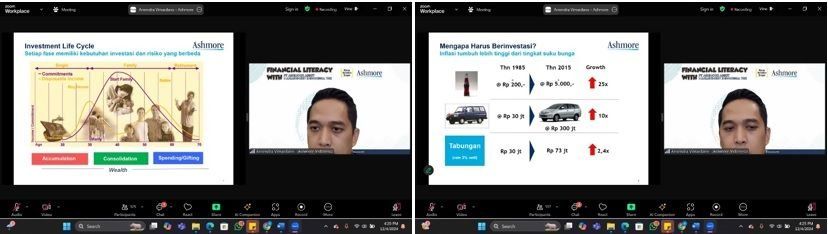 Zoom Meeting, Wednesday, December 4, 2024 – PT Ashmore Asset Management Indonesia Tbk (“Ashmore”), in collaboration with the Yayasan Karya Salemba Empat (KSE), successfully held an online seminar on Financial Literacy via Zoom. This program aimed to enhance students’ understanding of personal financial management, investment, and financial planning for the future—essential skills in the modern era. The seminar was attended by 135 KSE scholarship recipients from 35 state universities across Indonesia. It is hoped that the program will encourage students to become financially literate young individuals who can apply their knowledge to improve their quality of life.