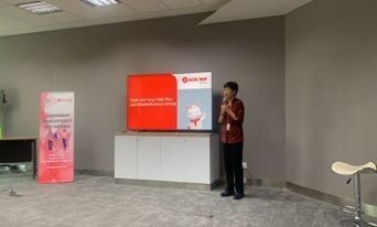 The speech from the Karya Salemba Empat Foundation was represented by Mr. Ahmad Solihin as Deputy Executive Chairman of KSE, he expressed his gratitude to OCBC, especially Mrs. Parwati, who has been supporting the KSE scholarship program, where assistance is not only provided for the regular scholarship program but also assistance in implementing coaching programs such as Sharing Sessions and Community Development Programs.