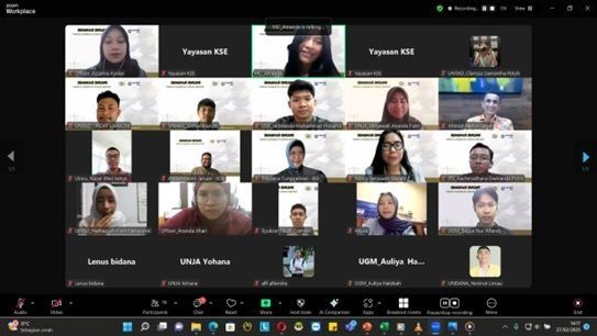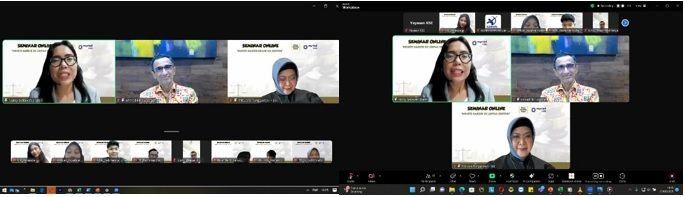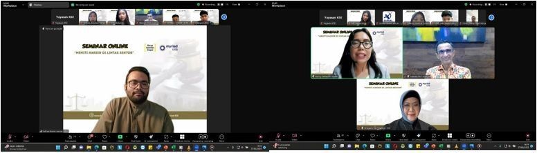 This activity began with an opening by the MC singing the song Indonesia Raya and the KSE march. The series of activities continued with a speech delivered by Mr. Adrian Karim Januar as Executive Chairman of the Karya Salemba Empat Foundation. Mr. Adrian expressed his gratitude for the support provided by Mr. Ahmad Fikri Assegaf as Senior Partner of Assegaf Hamzah & Partners and Mrs. Tribuana Tunggadewi as Director of Compliance & HR at PT Bank Syariah Indonesia Tbk to the KSE Foundation and hopes that they will continue to collaborate in the future. The next series is a group photo between Mr. Adrian Karim Januar, Mr. Ahmad Fikri Assegaf and Mrs. Tribuana Tunggadewi along with moderator Mrs. Nancy Silalahi as well as a photo with the online seminar participants.