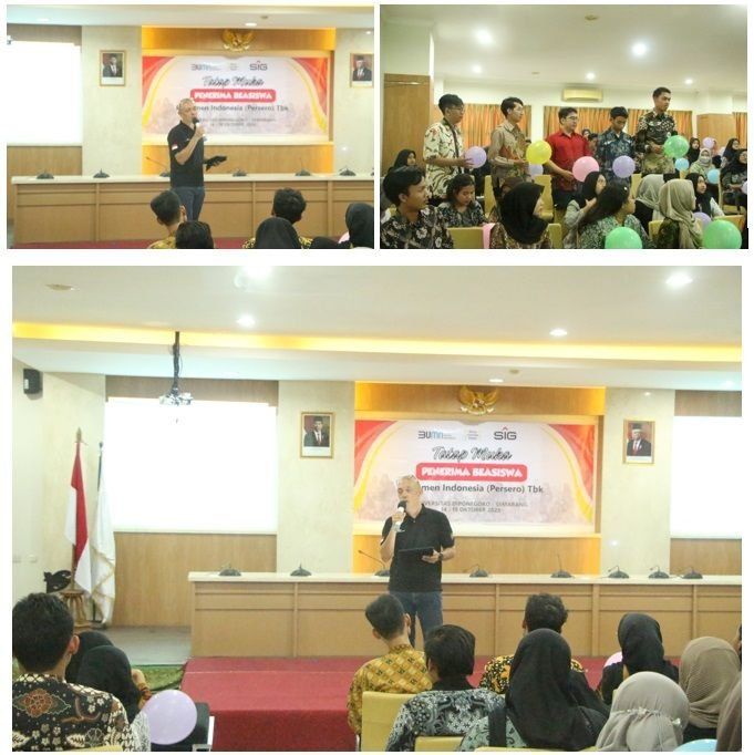 In addition to providing scholarships, SIG also provides soft skills training to students. One of them is through the Scholarship Recipient Face-to-Face activity held at Diponegoro University on 14-15 October 2023. This activity was attended by 120 scholarship recipient students from Diponegoro University, Sebelas Maret State University and Gadjah Mada University. The hope is that this activity can improve the soft skills of students, especially in preparing themselves to become graduates with high integrity and professionalism.