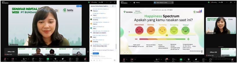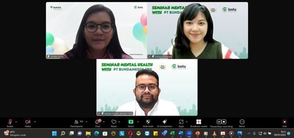 PT Bundamedik TBK (BMHS) as one of the donors of the Karya Salemba Empat Foundation has held a Mental Health seminar to provide education related to health among the current generation. This activity was held on Thursday, January 9 2025 online via the Zoom application, attended by scholarship recipients spread from Sabang to Merauke. Participants in this seminar reached approximately 130 students who were very active and enthusiastic about taking part in the series of events which started at 14.00 WIB until 16.30 WIB. This activity began with an opening by the MC singing the song Indonesia Raya, KSE march, PT Bundamedik Tbk company profile and PT Bundamedik Tbk themesong. The series of activities continued with a speech delivered by Mr. Adrian Karim Januar as general chairman of the Karya Salemba Empat Foundation. Mr. Adrian expressed his gratitude for the support provided by PT Bundamedik Tbk to the KSE Foundation and hoped that they would continue to collaborate in the future. Then the second speech was delivered by Mrs. Emilia Rouli as Chief Human Capital Officer of PT Bundamedik Tbk. Mrs. Emilia said that the problems that are often faced today are regarding mental health, especially for generation Z children. It is hoped that the existence of mental health seminars can be a forum for generation Z to be more care about mental health.