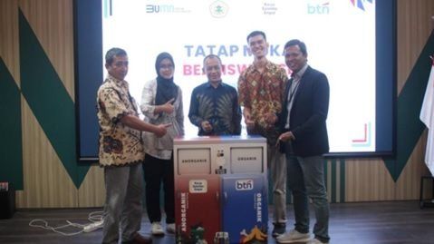 Not only was there a ceremony to hand over souvenirs, this activity also carried out the handover of automatic trash cans (TONGSIS) created by students of Technology for Indonesia or TFI, which is one of the flagship programs of the KSE scholarship. On this occasion, representatives from the Jagantara team, which is the name for the team that makes TONGSIS, conveyed a few tutorials and innovations from this TONGSIS. By using sensors, this TONGSIS is able to detect the type of waste that will be put into the trash can, and the trash can will automatically open according to the type, namely organic and non-organic. This TONGSIS will be given to BTN as a form of gratitude for the assistance that BTN has provided to KSE. Together, representatives from the TONGSIS team handed it over to BTN representatives and were followed by taking a group photo.