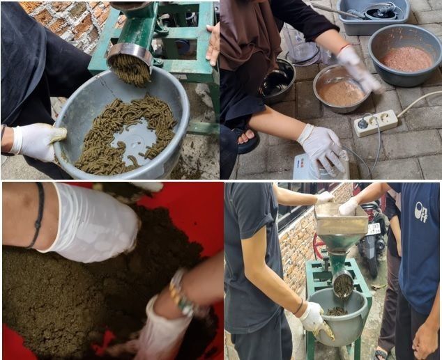 Next, for 5 consecutive days, the Alternative Feed members prepared tools and materials and began to formulate the materials that would be used to perfect the previous formulation. Even though there was a failure in the process of making the pellets in variation 3, this could be handled well by the members. Good collaboration between members is one of the keys to the success of making this alternative feed.