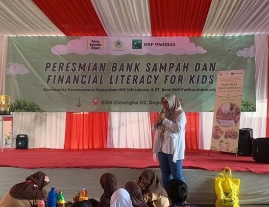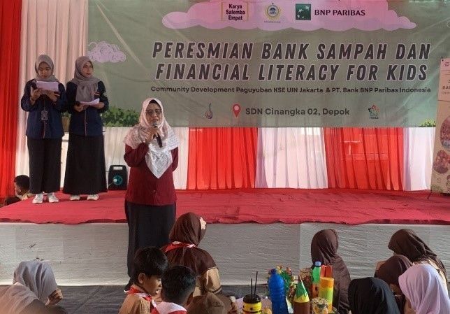 Yayasan Karya Salemba Empat (“KSE”) together with one of the donors, PT Bank BNP Paribas Indonesia (“BNPPI”) carried out the “Financial Literacy for Kids & Inauguration of Community Development Bank Sampah SD” activity. This activity was held on 02 March 2024 at SDN 02 Cinangka, Depok. The Community Development Bank Sampah SD programme is run directly by the KSE UIN Jakarta Scholarship Recipients Association. This activity was attended by approximately 100 students of SDN 02 Cinangka consisting of classes 5A, 5B and 5C. The series of activities today is a form of continuation of the socialisation of waste management that has previously been carried out by the KSE UIN Jakarta Scholarship Recipients.