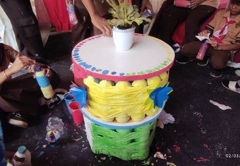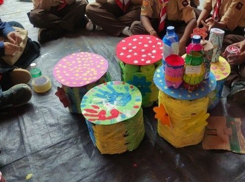In this series of activities, there is also a competition to make ecobricks that are transformed into tables and chairs that will later be placed in the Ecobrick reading park of SDN 02 Cinangka. The students were divided into 6 groups, accompanied by the PIC of the UIN Jakarta KSE student body. The ecobricking was started during socialisation by the KSE UIN Jakarta staff at SDN 02 Cinangka and continued with finishing when the activity was inaugurated today. Not only making tables and chairs, the students have also brought their own piggy banks from used bottles decorated according to their own creations. Approximately 45 minutes of the competition, followed by judging conducted by the school and BNPPI. Not only judging, on this occasion the donors also purchased ecobricks that had been collected by the children, this was done so that the children continued to have the enthusiasm to protect the environment by not littering, and certainly had savings. The event concluded with the announcement of the winners for each group and a group photo.